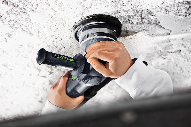 Зачистной фрезер Festool RENOFIX RG 80 предназначен для удаления клея, краски, защитных покрытий, штукатурки на основе синтетических масел, пористого бетона и силикатного кирпича. Подходит для использования на поверхностях большой площади или локального применения на стене, потолочном перекрытии и поле. Оптимальное решение для снятия материала при ремонте и зачистке поверхности. Компактный, удобный и высокопроизводительный благодаря двигателю 1100 Вт. Постоянное число оборотов под нагрузкой благодаря наличию электроники с тахогенератором. Инструмент оснащен контролем температуры обмотки, защищающим двигатель при перегрузке. Адаптация скорости под материал благодаря электронной регулировке числа оборотов. Уверенное ведение благодаря опорной плите с плавной регулировкой глубины. Чистый воздух благодаря эффективной системе пылеудаления. Уверенная работа благодаря доп. рукоятке «Vibrastop» с полиуретановым покрытием. Плавный ход почти без вибраций благодаря гашению колебаний. Подходящий инструмент для любой области применения и любого материала. Есть возможность использовать инструмент DIA.