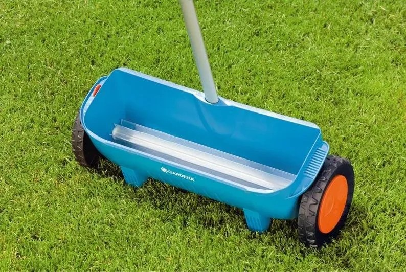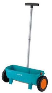 Принцип работы: Сеялка перемещается по поверхности, и ее колеса приводят в движение механизм разбрасывания. Есть модели с ручным управлением (оператор толкает перед собой) или те, которые можно присоединить к газонокосилкам-тракторам Gardena.