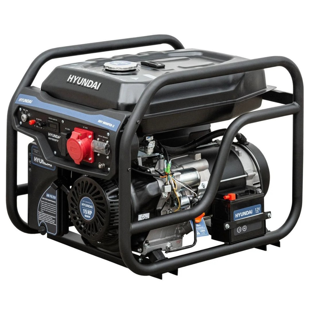 Генератор бензиновый Hyundai HHY. Генератор HYUNDAI это надежный и долговечный помощник в обеспечении электропитания. Серия BUSINESS обеспечивает потребителя высокими пусковыми токами. Может применяться в передвижных ремонтных мастерских и как источник дополнительного питания в жилых домах, коттеджах, учреждениях, офисах или средних размеров магазинах. Высокая производительность в условиях резервного, сезонного или аварийного энергообеспечения. Фирменный двигатель с увеличенным моторесурсом: Кроме стандартного маслоразбрызгивателя на шатунах, на двигателях данной серии встроенный масляный насос, с помощью спроектированных масляных каналов гарантирует принудительное попадание масла ко всем механизмам двигателя для снижения трения; Установлен масляный фильтр, обеспечивающий фильтрацию масла от нежелательных элементов; Увеличенные размеры впускного и выпускного клапанов для быстрого заполнения и освобождение камеры сгорания, которые облегчают работу двигателя. Максимальная мощность 3 фазы - 6,5 кВт; Номинальная мощность 3 фазы - 6,0 кВт; Номинальная мощность 1 фаза - 2,0 кВт; Напряжение - 220 B; Частота - 50 Гц; Розетки - 220*16А+380*16 А; Дисплей (напряжение, частоту, время работы) - 3 в 1; Емкость топливного бака - 25 л; Время работы на полном топливном баке – до 20 ч; Уровень шума на удалении 7м - 74 Дб; Макс. Ток выхода 12 Вольт - 8,3 А; Альтернатор - медная обмотка; Аккумуляторная батарея – есть; Тип двигателя - бензиновый 4~х тактный; Выходная мощность двигателя - 15 л.с.; Запуск - стартер ручной + электр./ручной+электр.; Встроенный ATS коннектор - нет; Аккумуляторная батарея - есть; Объем двигателя – 420 см3; Объем картера - 1,1 л; Регулятор напряжения – AVR (автоматический регулятор напряжения); Габаритные размеры - 77х56х60 мм; Масса - 75 кг;