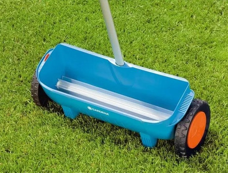 Принцип работы: Сеялка перемещается по поверхности, и ее колеса приводят в движение механизм разбрасывания. Есть модели с ручным управлением (оператор толкает перед собой) или те, которые можно присоединить к газонокосилкам-тракторам Gardena.
