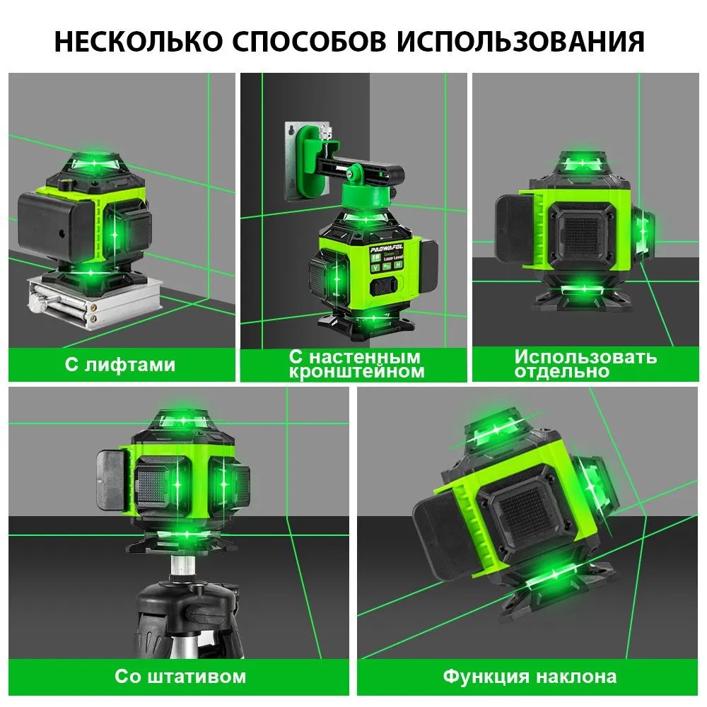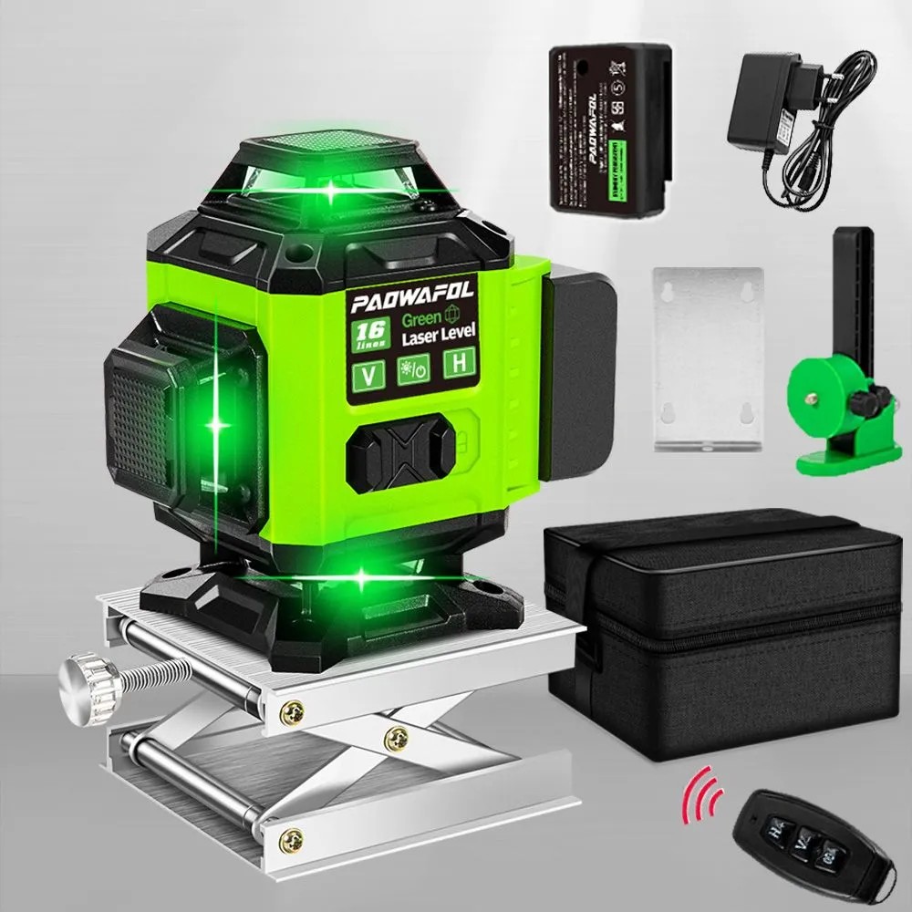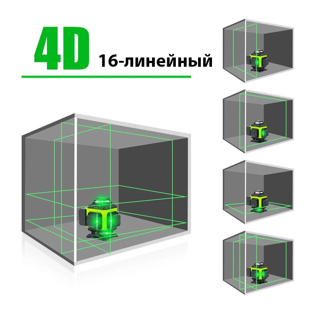 Профессиональный лазерный уровень 4D/16 линий, зеленый лазер, 360°