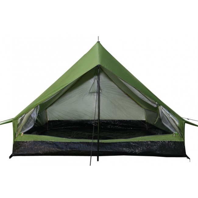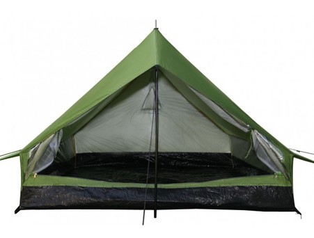 — Вход в палатку можно использовать с москитной сеткой (дополнительная вентиляция) или в закрытом виде (создать интимную обстановку).— Дополнительная вентиляция над входом в палатку продублирована в нижнем тенте.