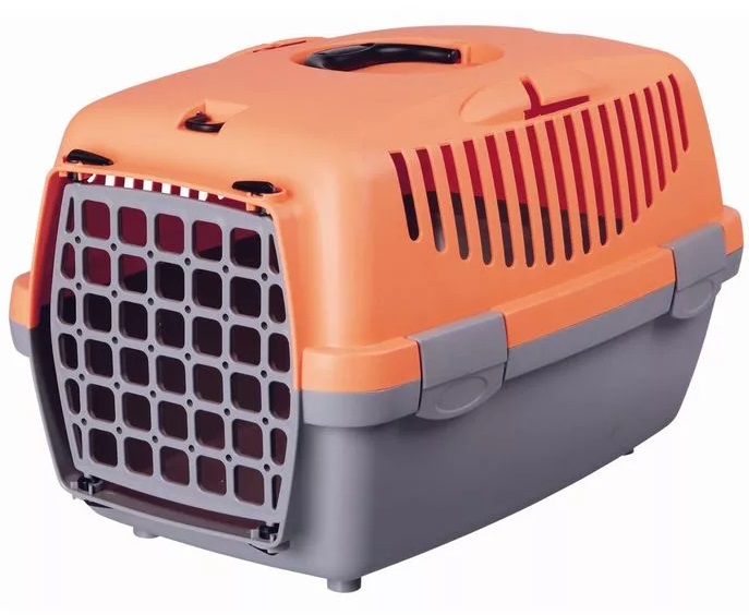 Переноска оснащена пластиковой дверцей, на ее крыше расположена съемная ручка.